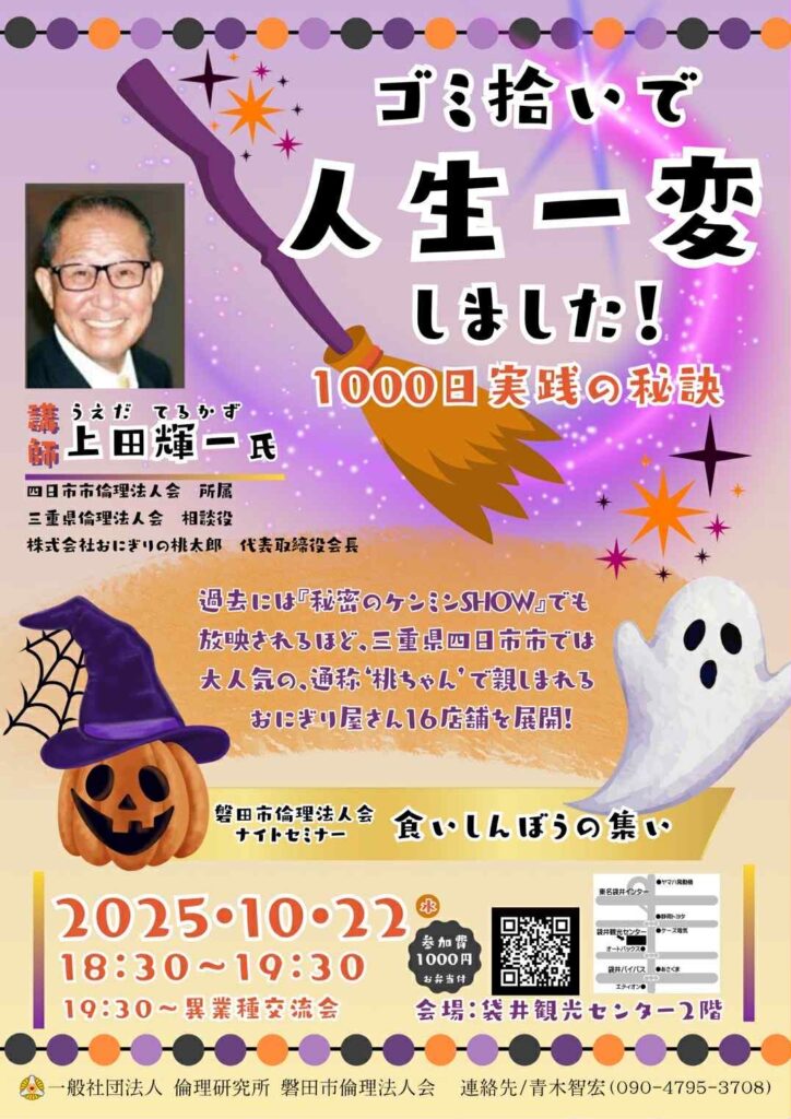 この度、磐田市倫理法人会では、上田 輝一氏をお招きし、2日間にわたり特別セミナー・モーニングセミナーを開催いたします。