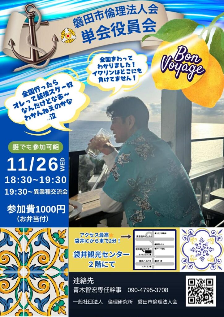 一般社団法人倫理研究所 磐田市倫理法人会 連絡先:青木智宏専任幹事 090-4795-3708 お申し込みはQRコードからどうぞ。