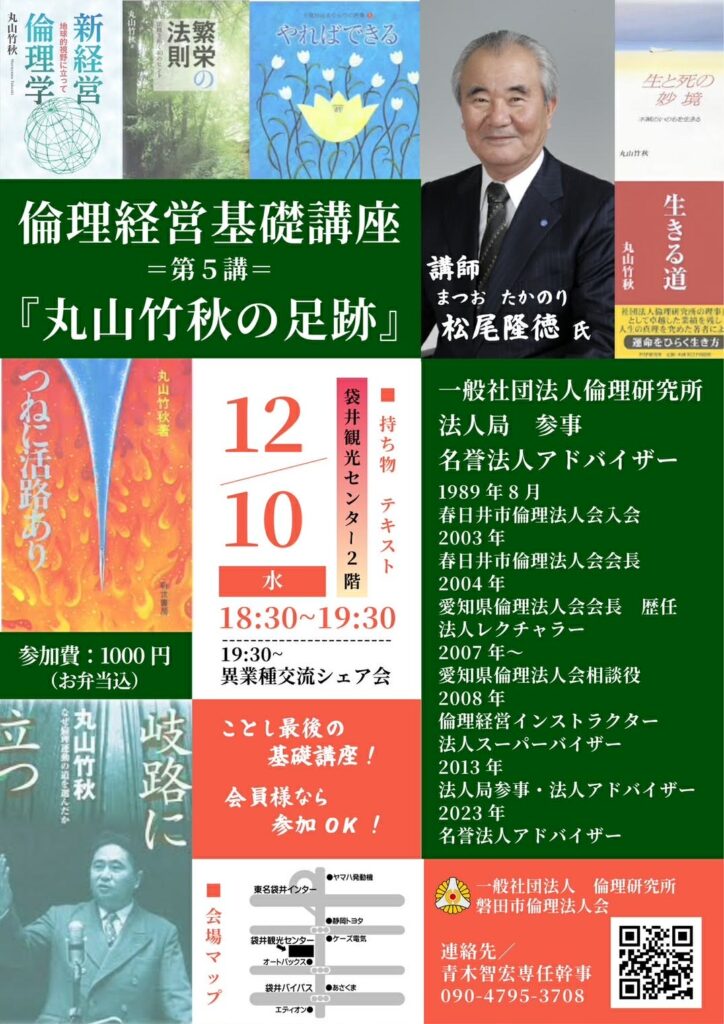 この度、磐田市倫理法人会では、松尾 隆徳氏をお招きし、2日間にわたり倫理経営基礎講座とモーニングセミナーを開催いたします。
